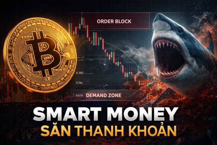 Đòn chí mạng xuất hiện khi vùng 70.000 USD bị xuyên thủng. Đây không chỉ là một vùng hỗ trợ tâm lý, mà còn là khu vực thanh khoản cực lớn của thị trường. Khi mức giá này bị phá, điều đó gửi đi một tín hiệu rất rõ: Smart Money không còn bảo vệ thị trường ở vùng này nữa.